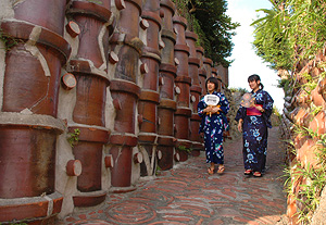 從常滑市陶瓷器會館出發,有兩條步行參觀江戶時代以來常滑陶瓷產業的路線。A線1﹒5公里需要60分鐘,B線4公里需要2小時30分鐘。沿著彎曲狹窄、象迷宮般的散步道,到處都可以看到燒製陶瓷器的窯場、煙筒、燒製好的管子以及燒酒瓶。在這種常滑特有的街道上漫步,會體驗到一種回歸歷史的享受。