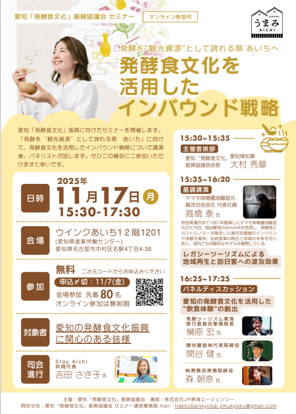 愛知「発酵食文化」振興協議会セミナーの参加者を募集します!~発酵食文化を活用したインバウンド戦略~
