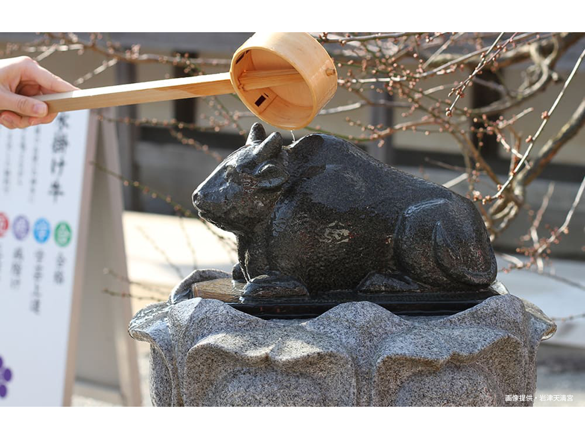 立春を翌日にひかえた節分の日に、季節の節目となる節分祭を執り行います。当日は11:00より、拝殿にて追儺の神事の後、拝殿内での豆撒き、そして境内での豆撒きと続きます。節分祭境内豆撒きに引き続き、今年の吉方の方角に「水掛け牛」を向き替え、方除けを行う神事の「岩津天満宮吉方祭」があります。また、終日節分厄除け祈祷を執り行い、「厄除福豆」(数量限定)を授与します。余香殿なおらいでは「岩津天神厄除餅」をお頒けいたします。
