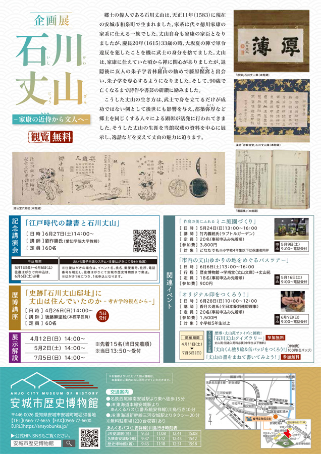 企画展「石川丈山 -家康の近侍から文人へ-」(あんじょうしれきしはくぶつかん