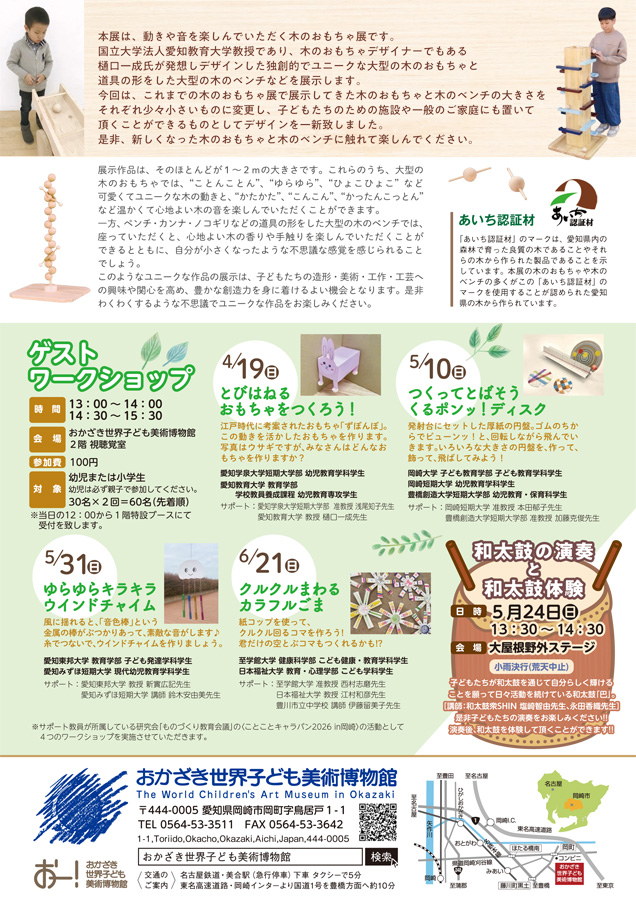 企画展「動きや音を楽しむ 樋口一成 木のおもちゃ展」(おかざきせかいこどもびじゅつはくぶつかん おかざきしせい110しゅうねんきねんじぎょう