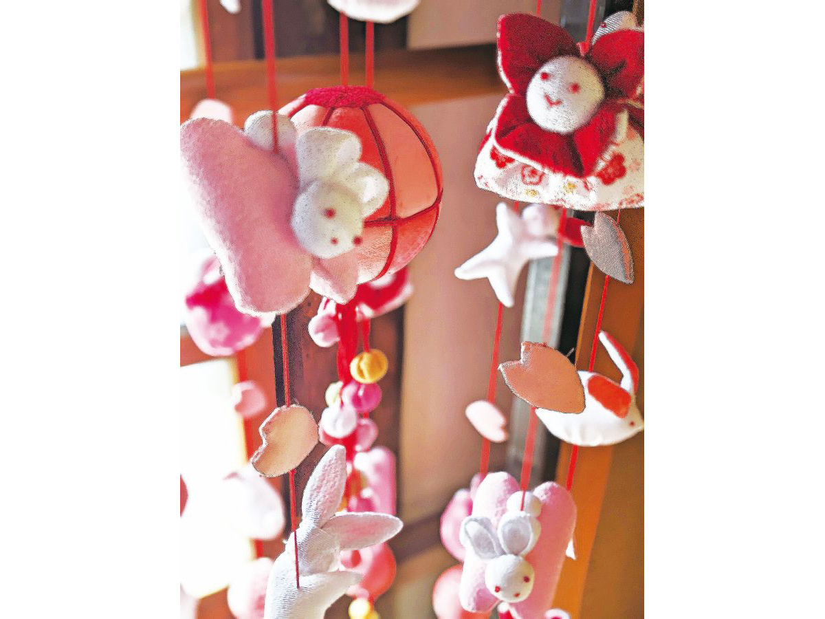 女の子の健やかな成長や幸せ、衣食住に困らないよう願いを込めて飾った吊るし雛。五穀豊穣を願う「三番叟(さんばそう)」、厄除けの「いちご」、子孫繁栄の「竹の子」などモチーフによって様々な願いが込められています。