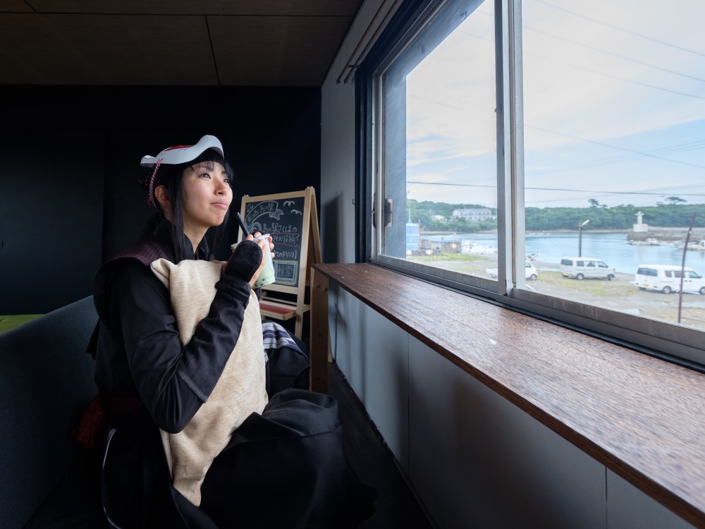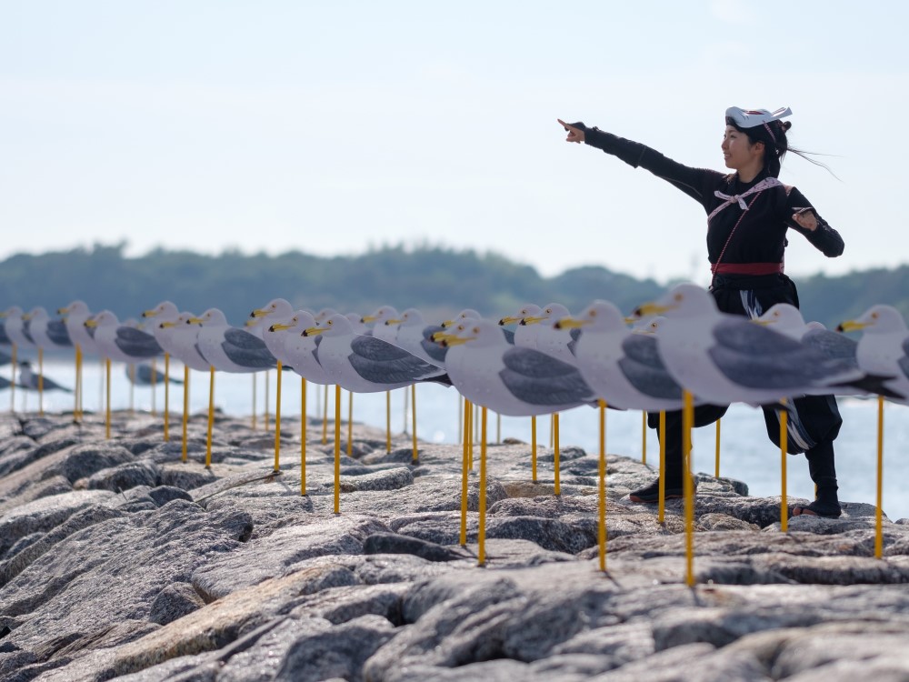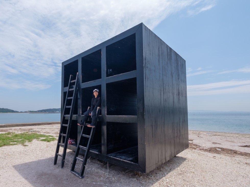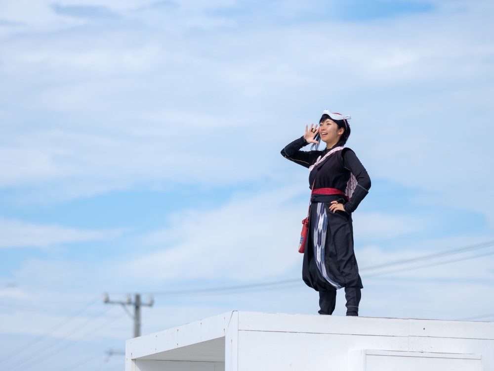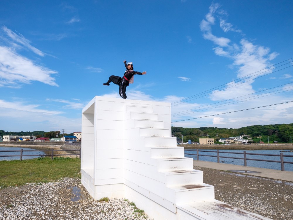 站在白色造型上面,环顾四周的水莲不断感概:人类创造的艺术在自然中共存,佐久岛真是个有意思的地方。