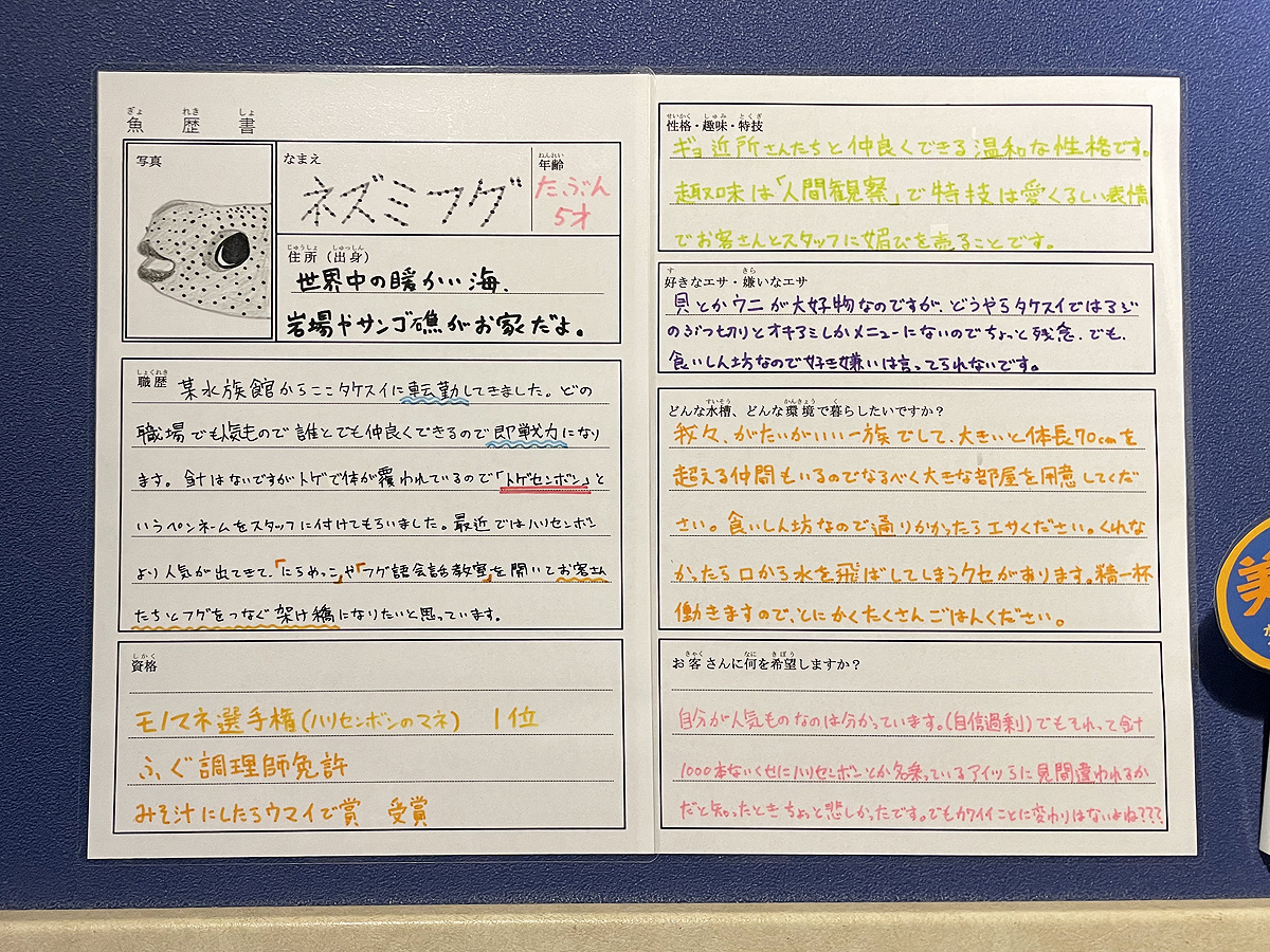 好独特的生物啊。为大家缓和这种冲击的是,馆内随处可见的手写介绍。简单易懂地将生物的小知识传授给游客。