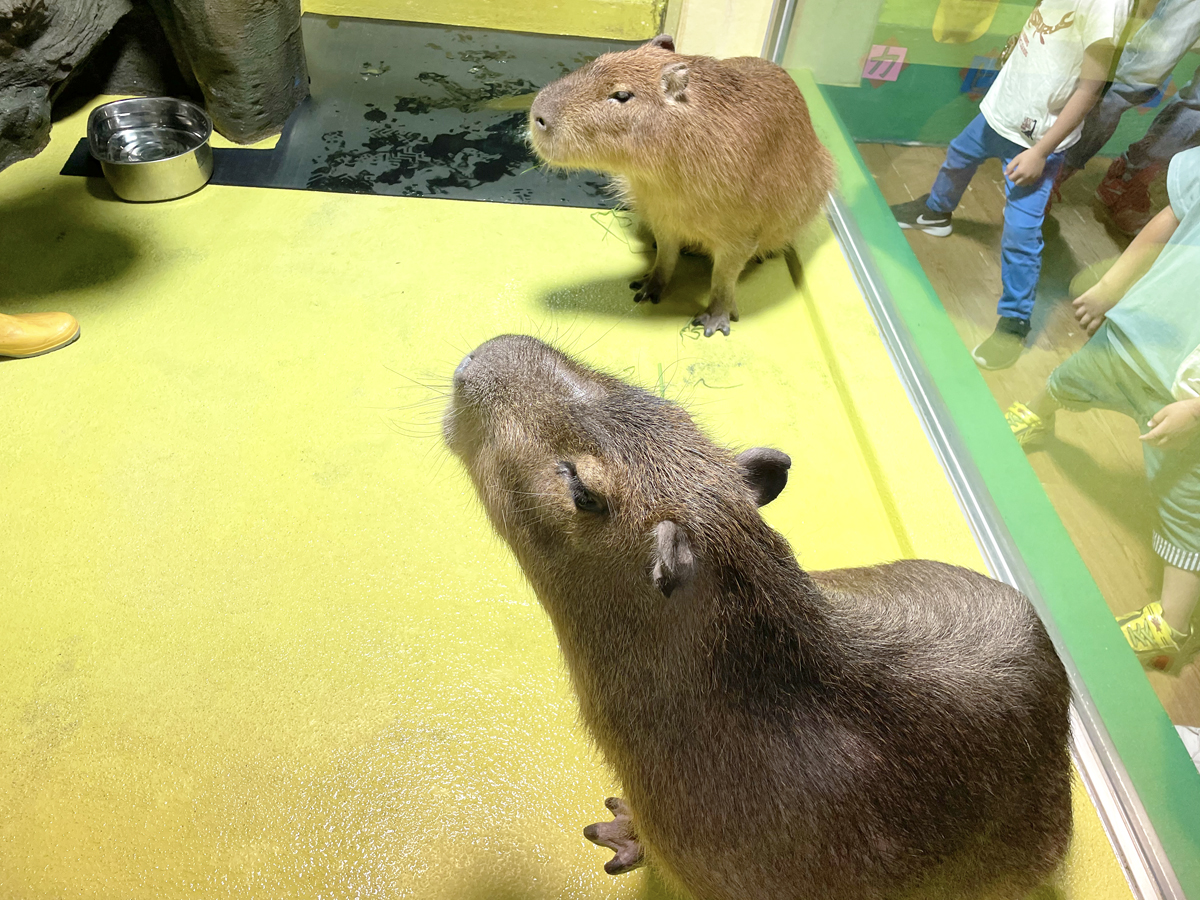 在这里,水豚伸出了手手。周围的人都不由露出了笑容。根据水豚的节奏,慢慢进行可爱表演。