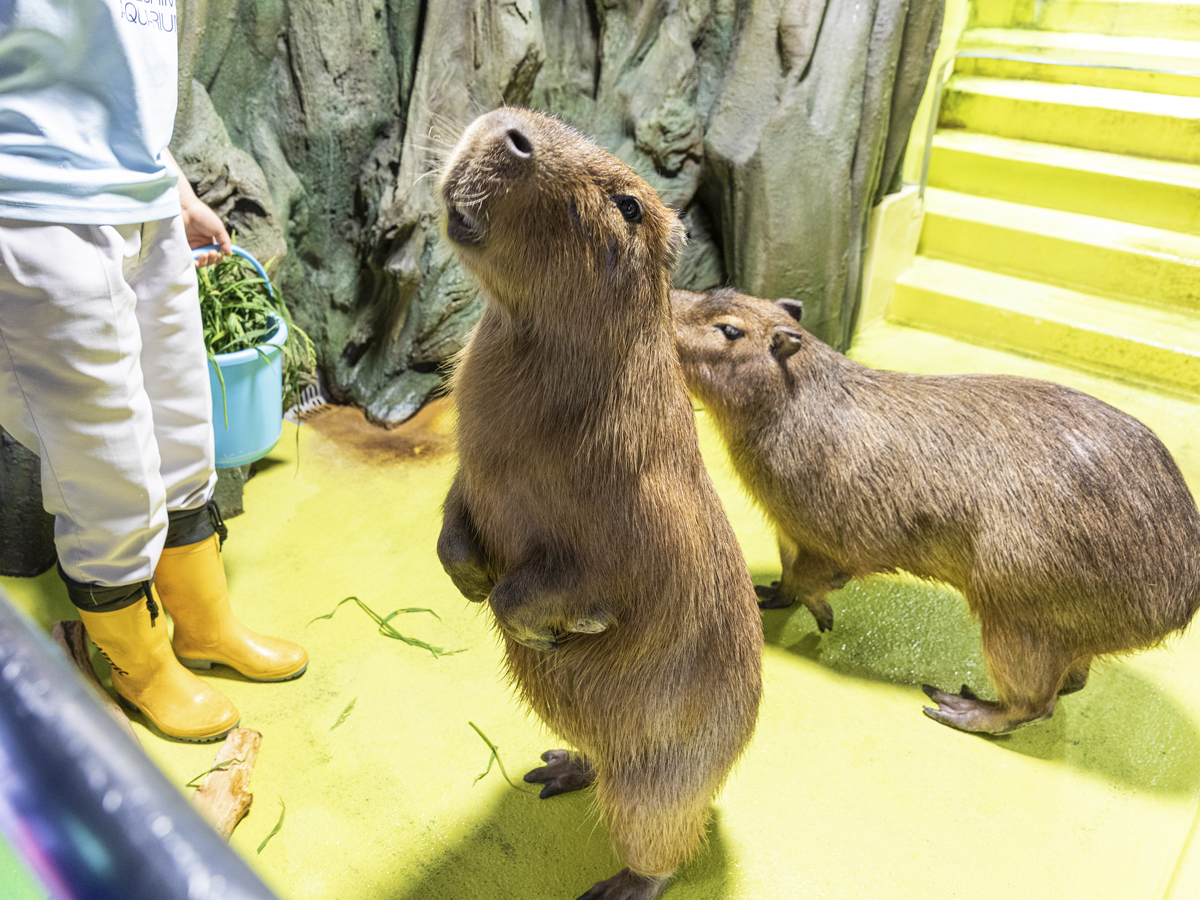 还可以这么近距离观赏水豚哦。这就是将生物的本来面貌展现给大家的竹岛水族馆的特有魅力。