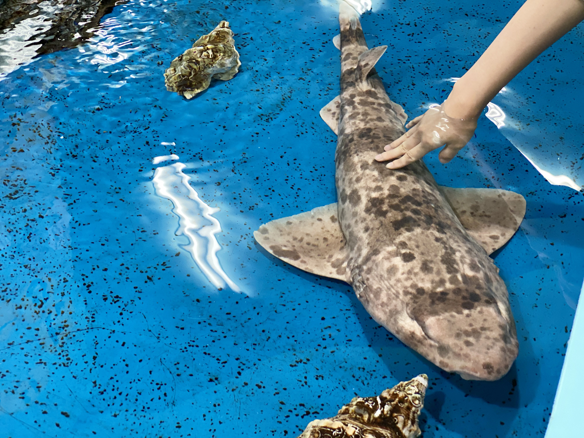 如果遵守触摸方法,孩子们也可以安心触摸展示的生物。我们去的时候,还可以触摸伊贺栗蟹和污斑头鲨等触感各不相同的生物。