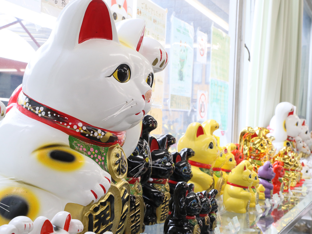 在江户时代的浅草,因为“按照老婆婆梦中猫的启示,制作了陶瓷的猫装饰物,然后一直有好事发生”的传说,兴起了招财猫的热潮。