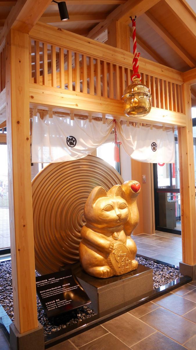 距离中部国际机场超近的永旺梦乐城内有条招财猫街道,内有一只高6.5米的超大招财猫。很多游客到这里购物的时候,都喜欢它合影。其实呢,就在这条街道上还有只金色的结缘招财猫,是个隐蔽的能量景点。据说很多人摸它举起的左手的红色心形,或者像在神社一样合掌参拜,祈愿邂逅良缘。找一找,看看它在哪里?!