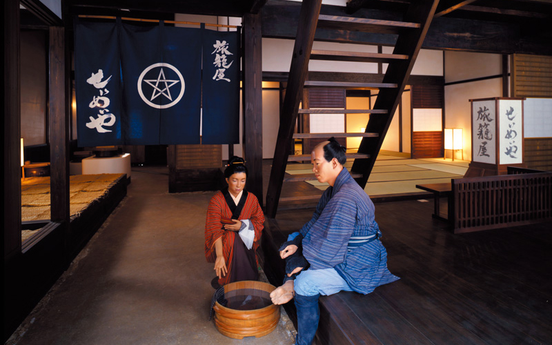 丰川稻荷→(步行7 分钟)→ 名铁丰川稻荷站(电车15分钟)名铁御油站 → (步行 15分钟)御油松树街道/ 御油松并木资料馆→(步行15分钟)名铁御油站 → (电车15 分钟 ※在丰桥站换乘JR电车)→ JR 二川站(步行15分钟)→ 二川宿本阵
