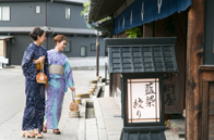 从热田神宫出发→(步行5分钟)→名铁神宫前站→(乘坐电车7分钟)→汉笠寺站→(步行5分钟)→笠寺观音→(步行5分钟)→本笠寺站→(乘坐电车8分钟)→有松站→(步行5分钟)→有松・鸣海老街道→(享受旧东海老街道散步)→有松・鸣海绞博物馆。