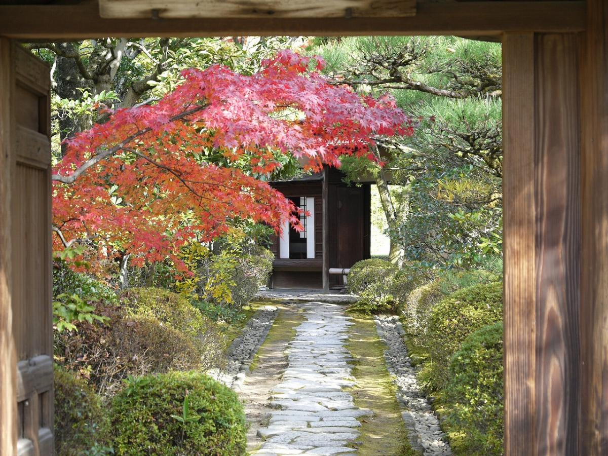各个品种的枫树装点着秋季的寺院。寺院内有观音堂、能满堂等很多江户时代建造的建筑,其中文化5年(1808)建造的五重塔可以说是兴正寺的象征。这座木造五重塔被指定为国家重要文物。从普门园内、茶室竹翠亭望出去的景色非常漂亮,不要错过。