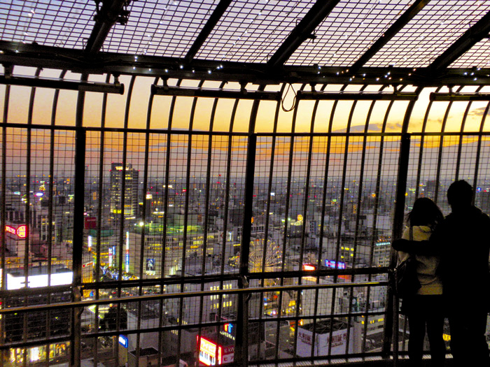 这是在空中90m的室内观景房的天空甲板观赏新年日出的活动。即使是在建筑物众多的名古屋市中心“荣”,站在这样的高处,一样可以清楚地看到太阳从东方升起。
