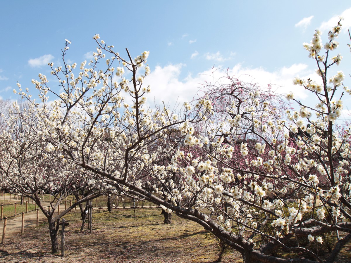 赤塚山公园位于赤塚山,因自生杨梅而知名。在占地面积4900㎡的梅园,种植着 25个品种281棵梅树,早开的冬至、寒红梅和晚开的垂枝梅、丰后等多种梅花在2月中旬以后将迎来最佳观赏期。其中,2月下旬开始绽放的春日野等品种,1棵树上绽放红白两色的花朵,非常罕见。来赏花的时候,记得找找看啊♪