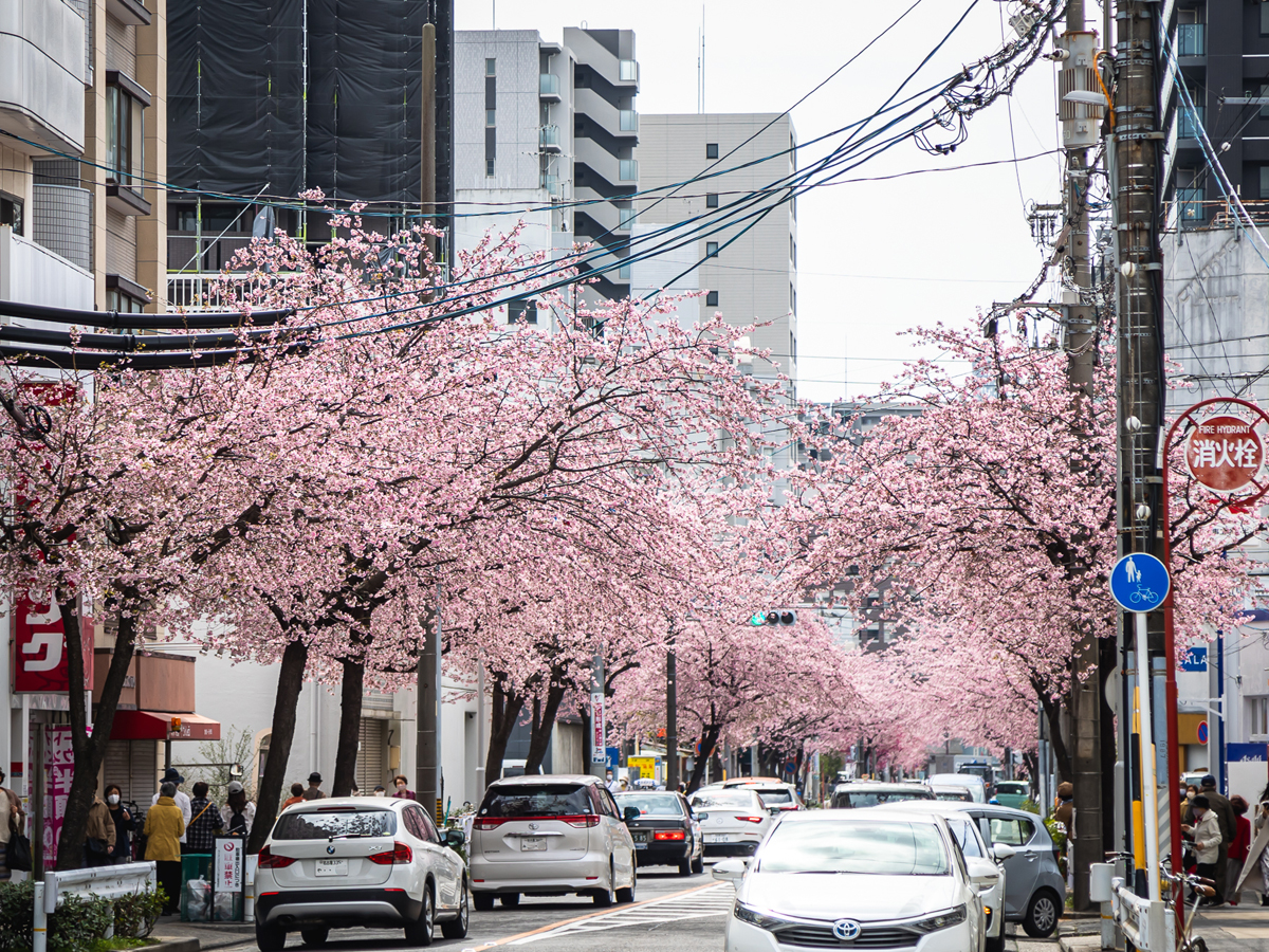 在地铁樱通线的“高岳”站2号出口出站即有长约1.4km的樱花道。种植着约140棵大寒樱和寒绯樱,樱花盛开时,形成美丽的樱花隧道,恍若仙境。比染井吉野早开一周左右,这里也是名古屋市内可抢先一步赏樱的名地。