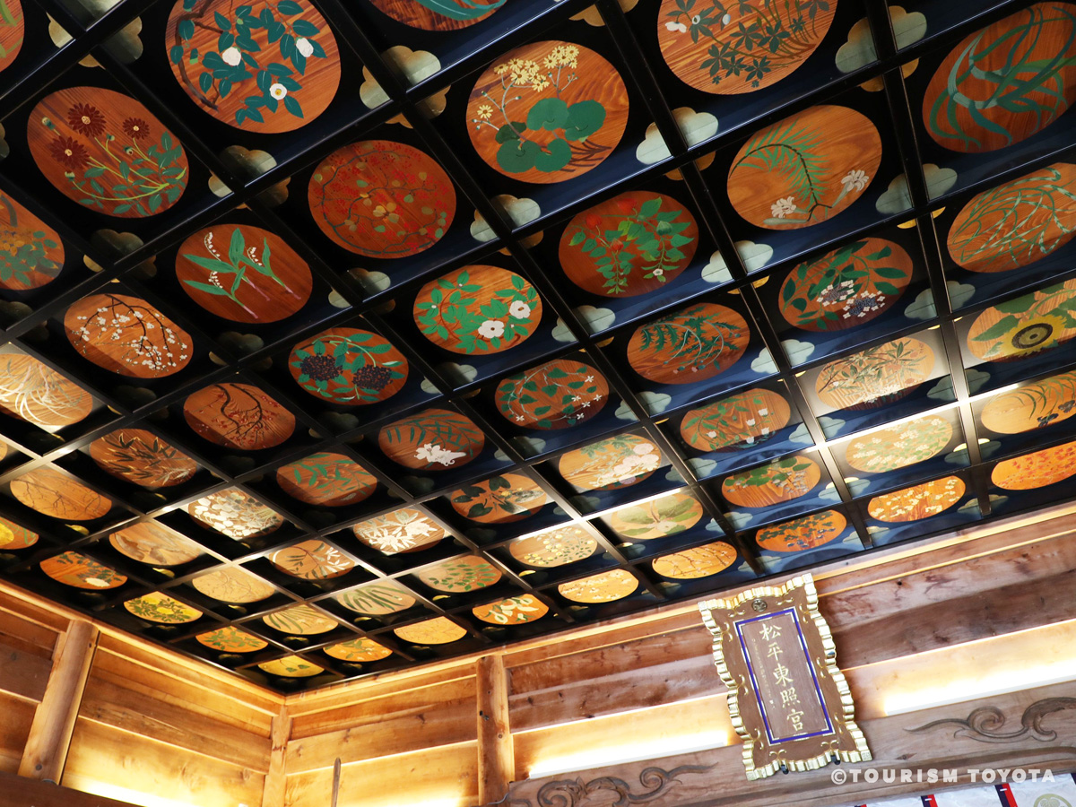 德川家康出身于“松平家”。松平家的始祖--亲氏开拓了松平乡并将其作为据点。这片土地上的松平东照宫,祭祀着德川家康和松平氏的始祖--松平亲氏。院内的据说在家康诞生时作为产汤使用过的“产汤之井”、作为德川家康公辞世400年纪念事业进行的本殿的漆绘天井画都是看点。