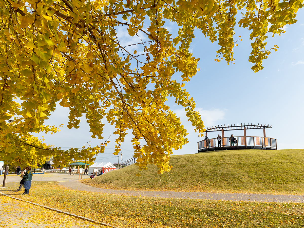 祖父江町内种植着1万多棵银杏树。 艳丽的红叶非常漂亮,但整个町都染成金黄色的这个时期,祐专寺、名铁山崎站周边有树龄两百多年的古木以及久寿银杏的原木等很多值得一看的地方。祖父江银杏公园内的银杏道、从观景台眺望的金黄色景色也非常推荐。