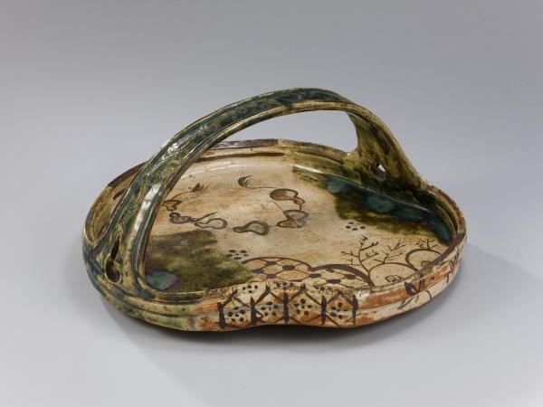 濑户地区珍贵的志野烧是16世纪发展起来的,特点是使用出现因铁形成的橙棕色斑点的白釉。人气很高的织部烧据说是由既是武士也是茶师的古田织部创建的,茶碗、茶筒、盘子、花瓶、香炉等造型奇特的器皿上用几何图形描画的深蓝、浓绿以及使用铜釉是其特点。这些器皿分别在精心打造各种效果的各个陶窑烧制而成。