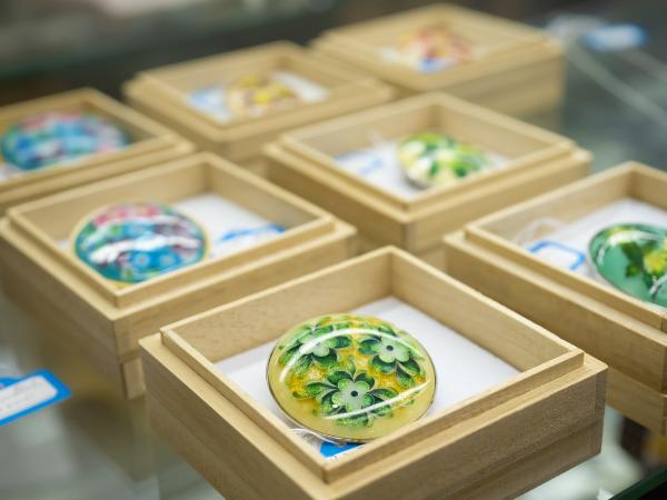 安藤七宝店的古典作品,展示在世界最大的装饰艺术和设计的美术馆——伦敦著名的维多利亚和阿尔伯特博物馆以及世界各地的其他美术馆,位于名古屋市中心荣的安藤七宝店和展示馆(七宝藏部)内展示着部分传统古董和时尚七宝烧的精美收藏,还出售各种商品。请在室内观赏这种艺术的美丽或者前往从名古屋市向西仅需20分钟的Ama市七宝艺术村进行观赏或体验。交流传承馆中展示着七宝烧的杰作,对其历史和技法也有介绍。游客可以参观七宝烧工匠工作时的情景,也可在体验区制作自己独有的首饰和伴手礼。