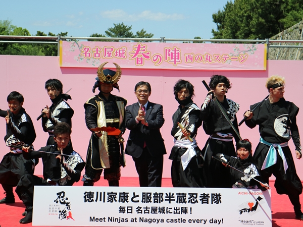 “名古屋城 春季阵”每年春季都会举办。欣赏樱花的同时,还有重要文物“西北隅橹”的对外开放、木曾川鸬鹚捕鱼实演、火绳枪实演、古武道大会、名古屋特色饭的摊位等各具特色的活动等您来!“德川家康和服部半藏忍者队”中的帅哥鲜肉外国忍者也会登场,为大家献上精彩的表演。一定不要错过忍者队英姿飒爽的演武表演哦!