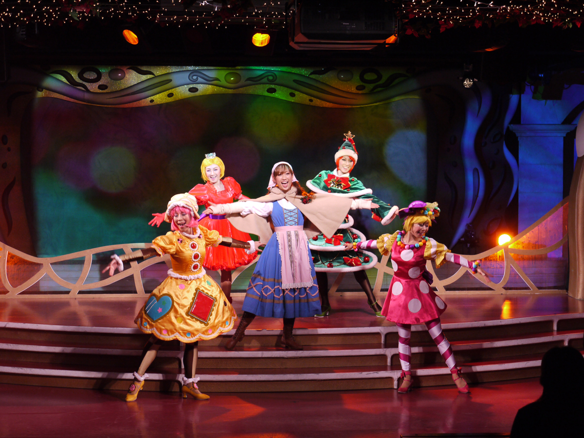 身穿圣诞服装的卡通人物们登场。还有圣诞节期间限定的卡通人物一起引爆圣诞季拉格娜喜雅的氛围。