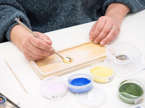 令人高兴的是,这里不仅可以看,还可以动手做!可从60分钟、90分钟、120分钟套餐中选择制作首饰、小镜子、马克杯。初学者建议选60分钟套餐。制作的作品当天就能带回家哦。