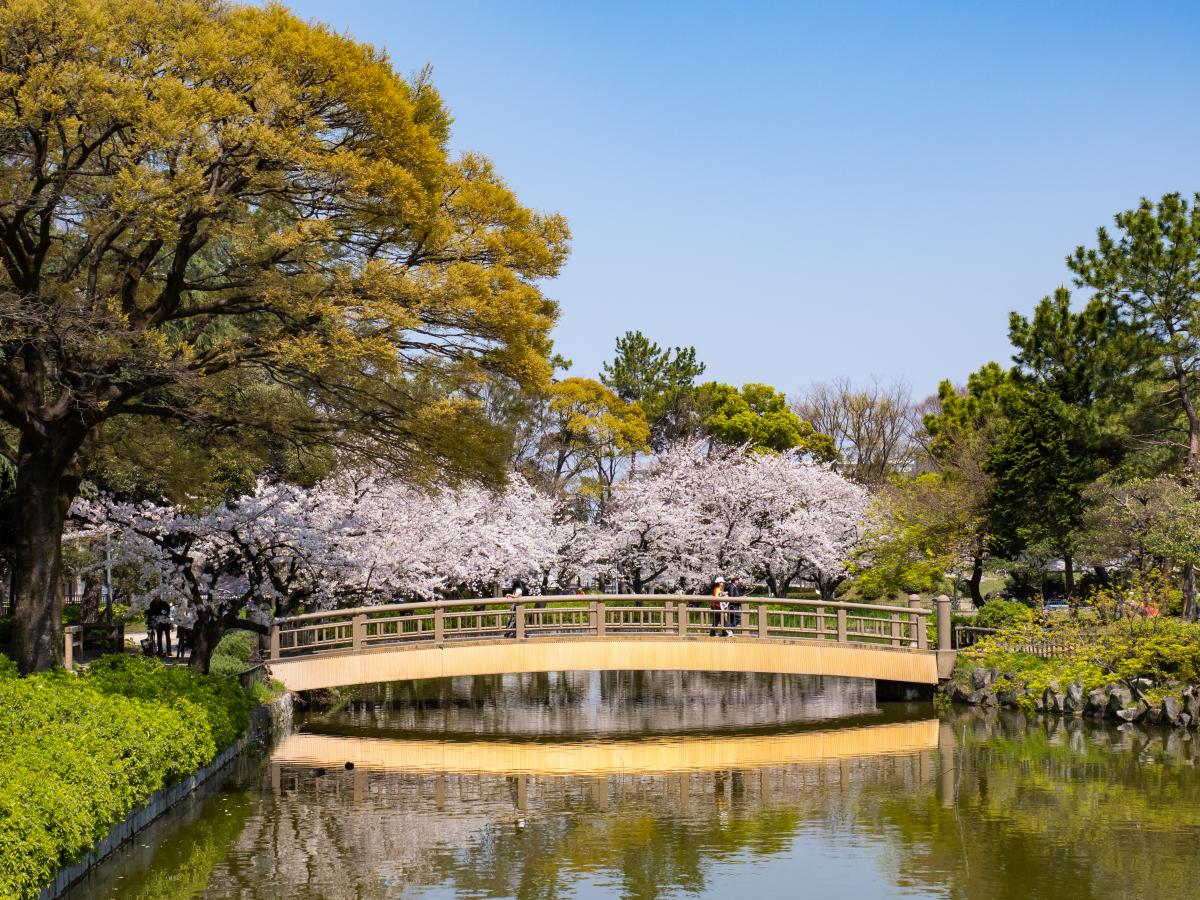 北园中有个大草坪广场,其中有“潺潺亭”水路和荷兰风车。位于小山坡上的“花山”,一到季节,就有大片的郁金香盛开,宛若置身于荷兰。残留着江户时代风情的“喷泉池”,在夏季可观赏喷泉喷水。名城公园有四季园和紫藤回廊等,而且还是著名的赏樱名地。不管是哪个季节到访,都非常赏心悦目,看点多多。