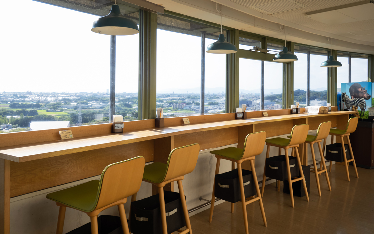 ▲展望塔の最上階にある「ステラカフェ」。見晴らしの良い景色を楽しもうと多くの方が訪れる人気スポットです。こちらでは、カウンターやテーブルの席数を減らし、定期的な換気などを行っています。