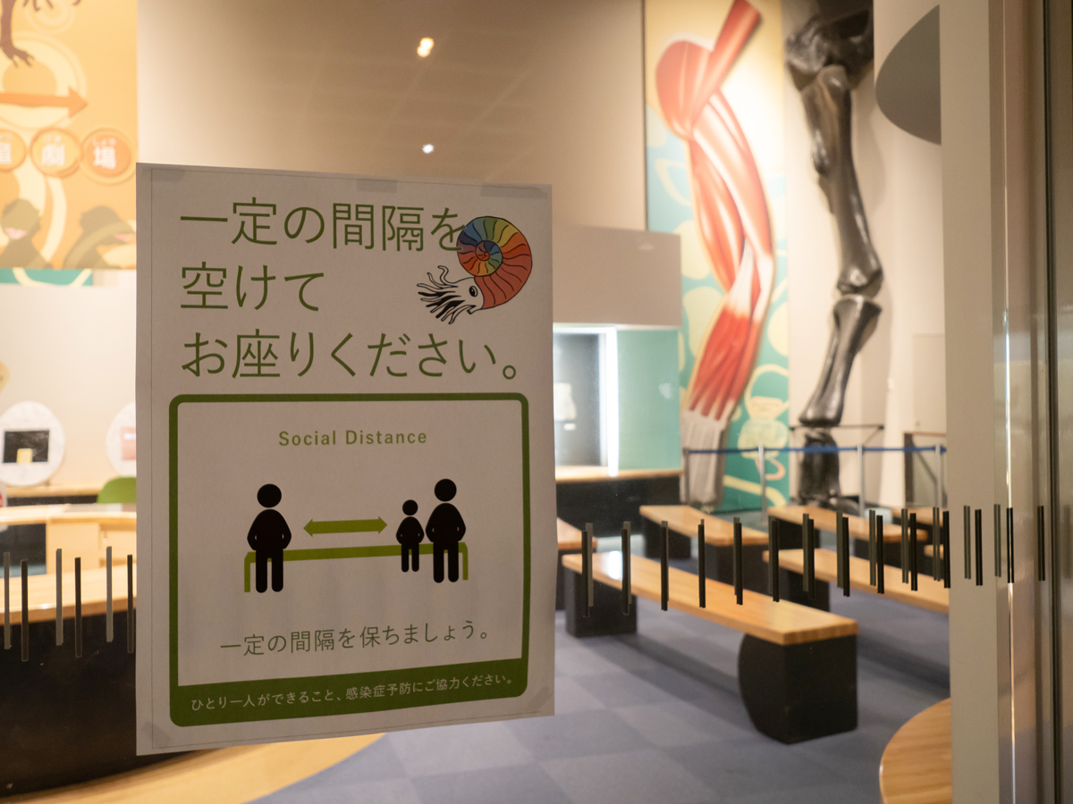 「博物館の展示は、本物に触れて感じることが大事だと考えているので、なるべく中止にせず、これまで通りに展示するには、どうしたら良いのかを考えました。ディスプレイにタッチしたり、岩石や化石など触れたりする実物展示の近くには、目立つように“消毒スポット”を置き、消毒を誘導しています。