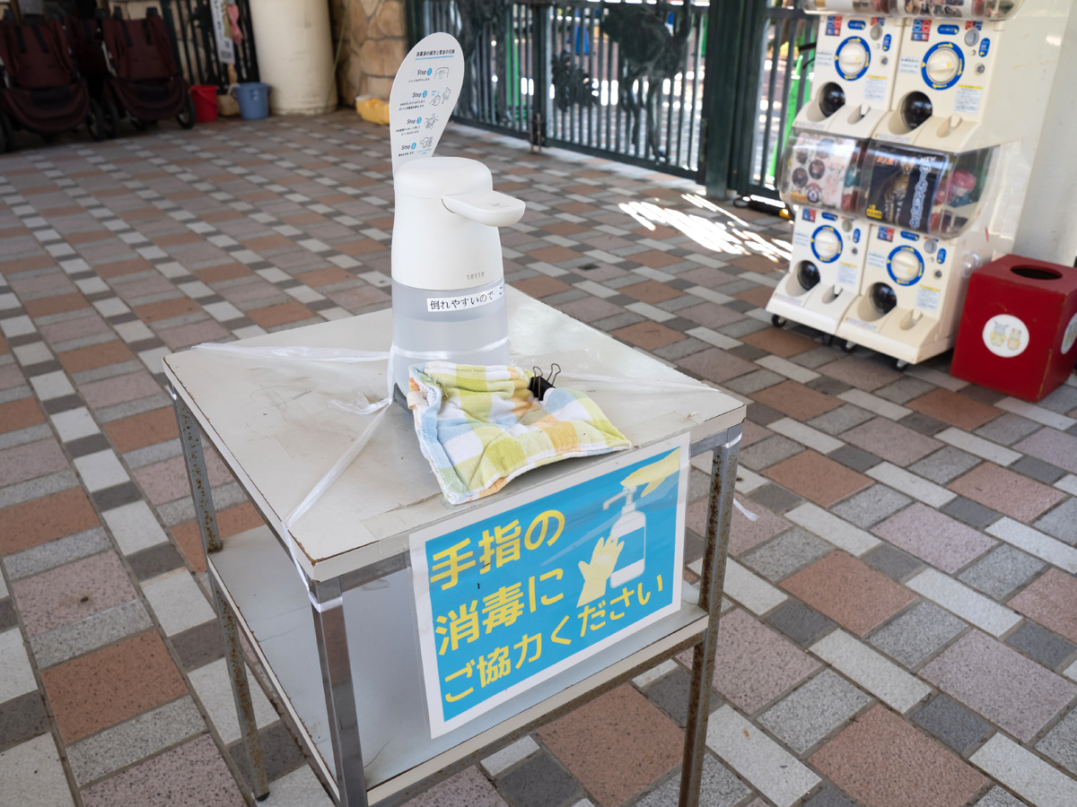 ▲3つの入口から入場できますが、いずれも「マスク着用」「手指消毒」「検温」の徹底をしております。ベビーカーの貸し出しも以前と同様行っています。もちろん、返却後はスタッフがすぐにアルコール消毒で吹き上げているので安心。