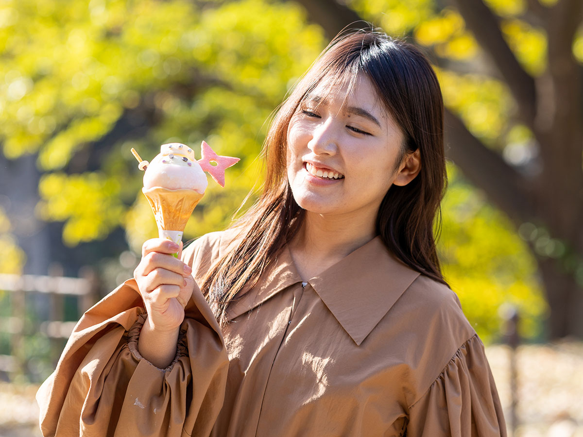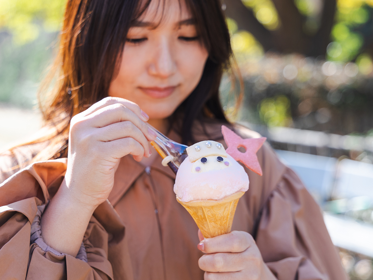 氷温熟成ステーキをはじめとした本格肉料理や、自家製パンのポップオーバー、ジェラート、スイーツまで、幅広いメニューが揃うカフェダイナー。キュートなビジュアルの「忍者アイス」は、やわらかな求肥に包まれて溶けにくく、写真に撮りやすいのもうれしいポイント!
