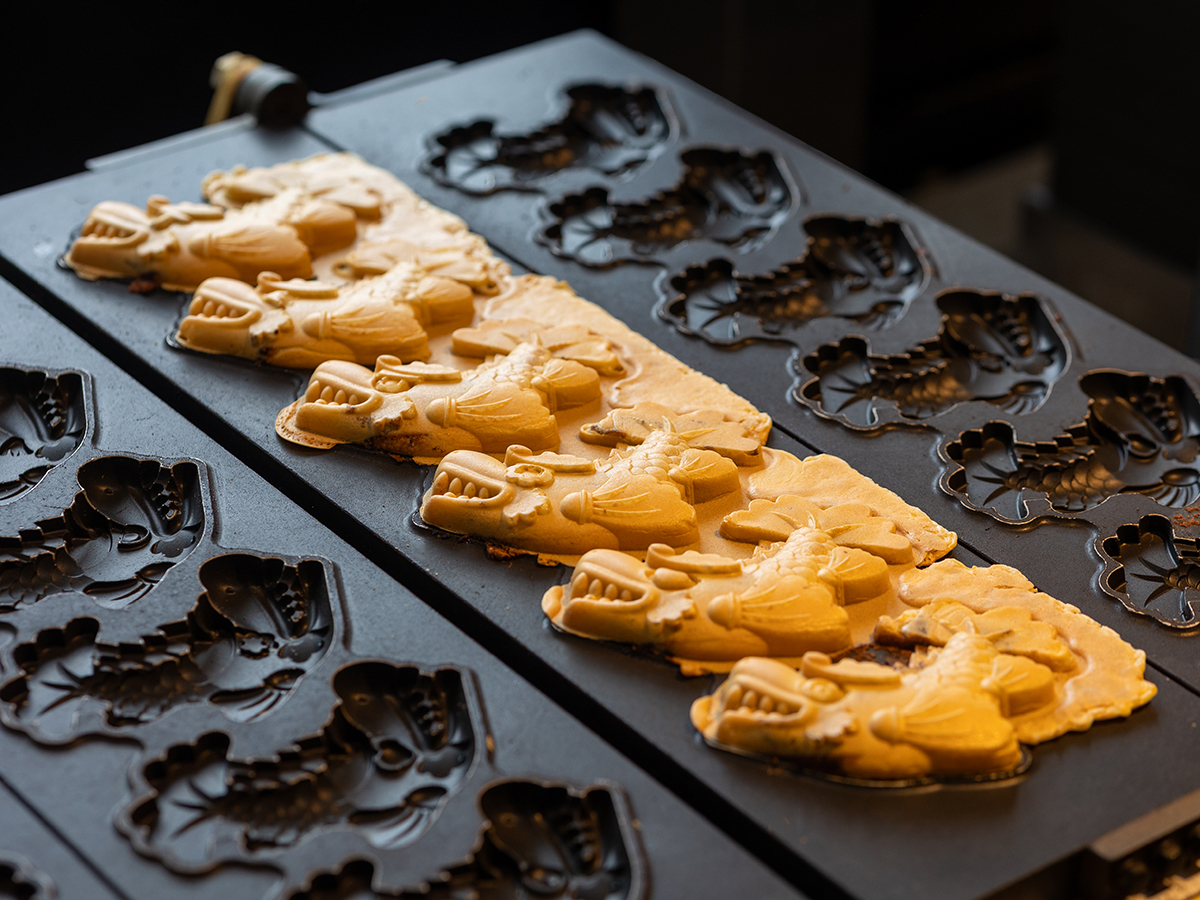 シャチホコをモチーフにした「金しゃち焼き」が名物の、テイクアウト専門店。香ばしい薄皮の中身は、あずきをはじめ、3種類のフレーバーから選べます。よく見ると目の形が異なり、運がよければかわいいハート型の目に当たることも! また、きな粉のかかった黄金みたらしやソフトクリームも人気です。