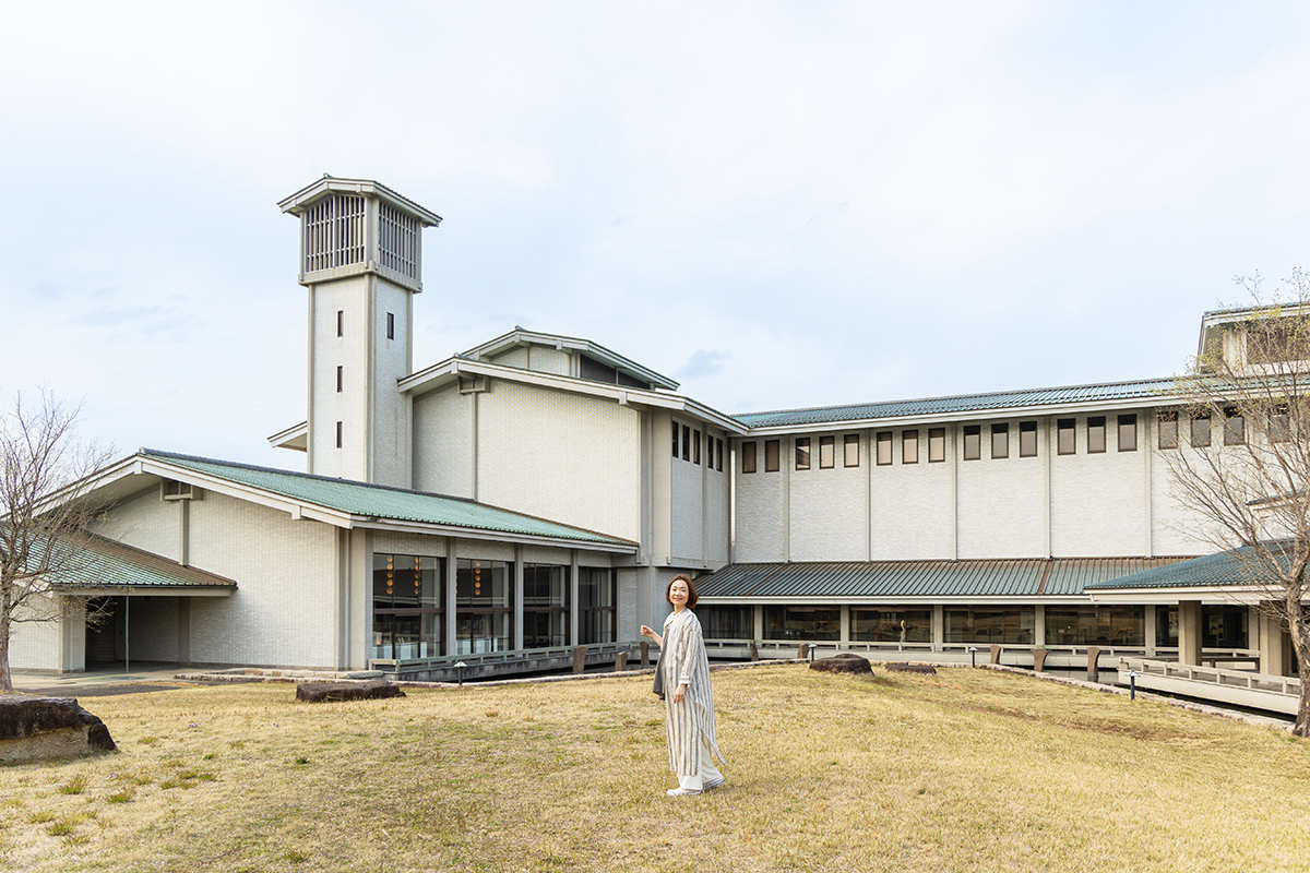 美術館の敷地内には、豊かな自然と調和するように建物が点在しています。望楼や、美しい建物の外観や屋外展示もみどころいっぱい。心地よい季節には、散策をしたり、芝生でのんびりくつろいだり、豊かな時間を過ごせます。
