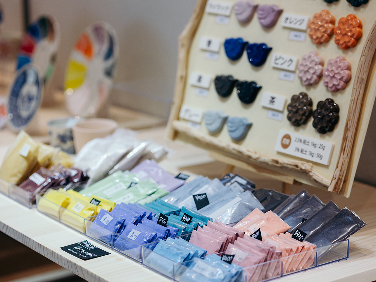 続いて向かったのは、「つくるとこ!陶芸館」。ここでは1kg単位で粘土を購入し、器やカップ、オブジェなどを自由に作ることができます。今回は、自分へのお土産として、マグカップ作りに挑戦!塊の粘土から、どんな形のカップを作ろうか……工作気分でワクワクします♪作陶経験がなくても、陶芸指導員によるデモンストレーションやレクチャーを受けられるので安心ですよ。また、カラフルな仕上がりにしたい場合は、オプションで顔料を購入し、粘土に練り込むこともできます。