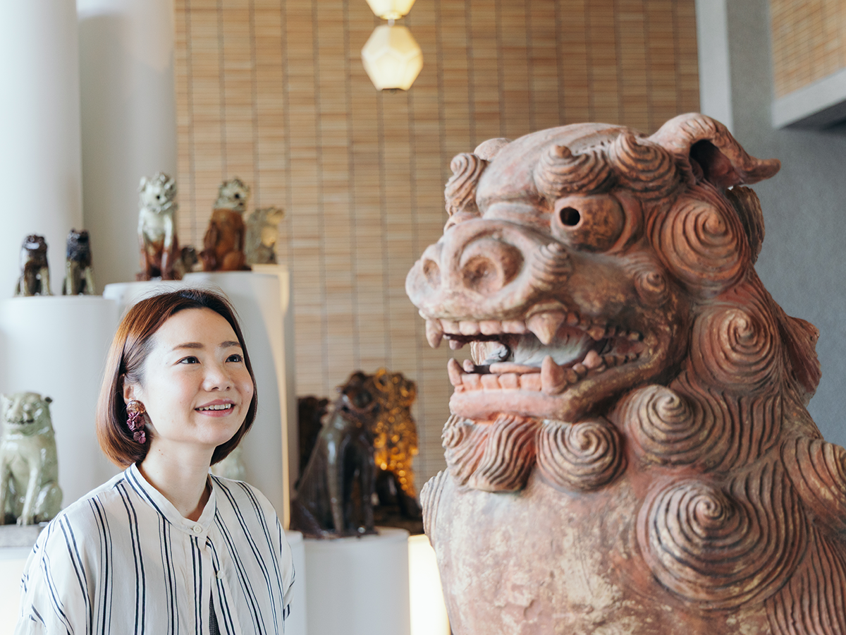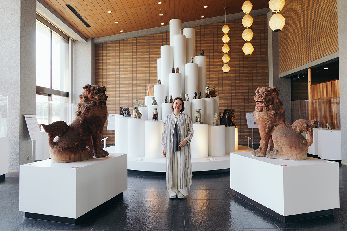 陶製狛犬のインスタレーションがお出迎え