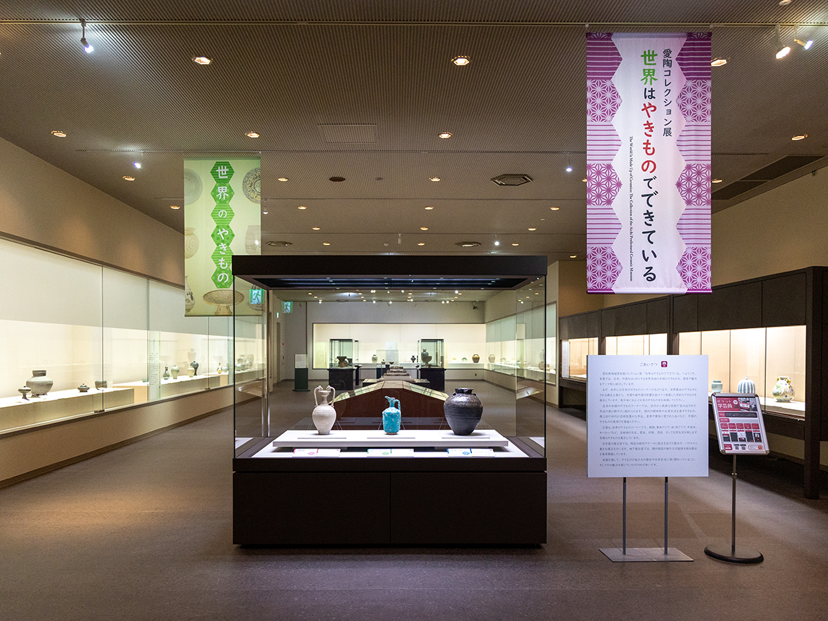 展示室では、これまでの常設展が、愛陶コレクション展「世界はやきものでできている」としてパワーアップ!8800点もの所蔵作品から、「日本」「中国」「世界」の地域やテーマ別に、常時500点ほどが展示されています。さまざまな色や形の作品を眺めていると、この器は誰に・どう使われていたんだろう?思わずそんな想像が膨らみます。