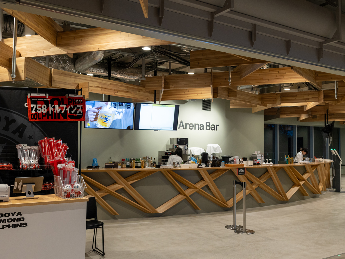 ラウンジ内には、2つのバーと2つの飲食店があり、ジャパニーズクラフトジン「六」を使ったカクテルや、クリーミーな泡のザ・プレミアム・モルツ、料亭「河文」やレストラン「THE KAWABUN NAGOYA」の運営会社がプロデュースする和洋食、職人が握る寿司などを楽しむことができます。なお、IGアリーナでの支払いは、すべてがキャッシュレスとなっています。