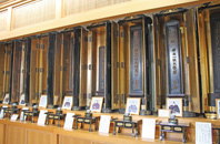 4桶狭間の戦いで今川義元が織田信長に敗れたとき、今川軍についていた家康は、大高城から大樹寺へ逃げ帰ったといわれています。先祖の墓の前で自害を図ろうとした家康を思いとどめさせたたのが、この寺の住職 登誉上人。松平四代の親忠が古戦場の首塚の近くに念仏堂を設けたのが始まりで、大樹寺は、松平家(徳川将軍家の祖)、徳川将軍家の菩提寺として大切にされてきました。ここには松平八代の墓、歴代将軍の等身大の位牌、家康73歳のときの木像などが祭られています。