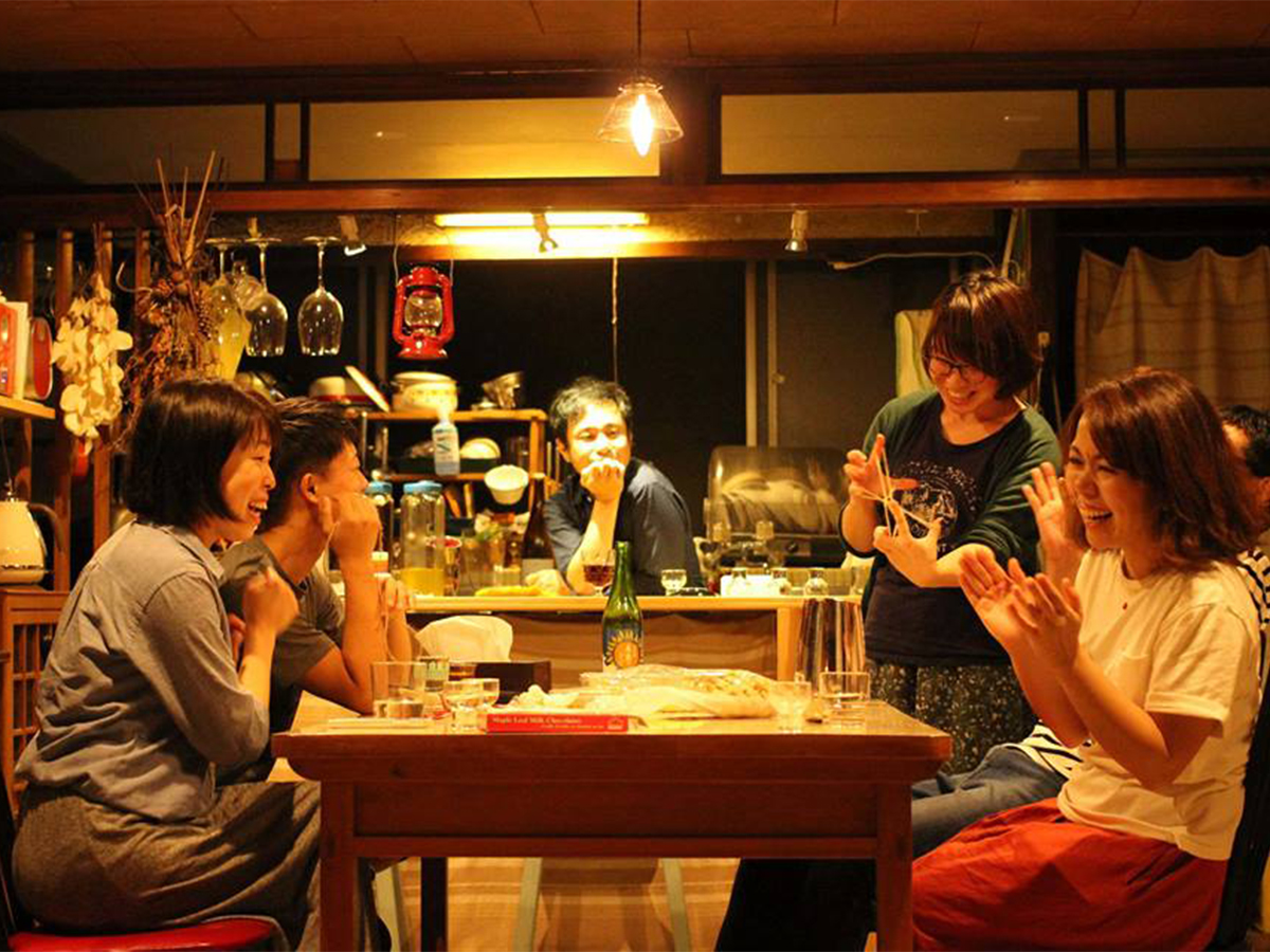 ご飯は共同調理、シェアご飯。その日に泊まりに来たゲストと一緒に、旬の食材を使用してご飯を作り、みんなで食卓を囲みます。わいわいと和やかに語らいながら、ゲストと共に過ごす時間をお楽しみください。