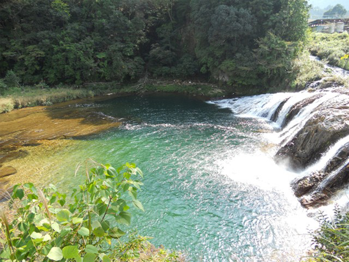 1轟音を響かせ、勢いよく流れ落ちる大瀑布。大千瀬川にかかる幅約70m、落差約10mの「蔦の渕」は、訪れる人を圧倒します!その雄大な姿から“奥三河のナイアガラ”の異名を持つこの滝には、竜神が住んでおり、竜宮城へつながっているという言い伝えがあります。