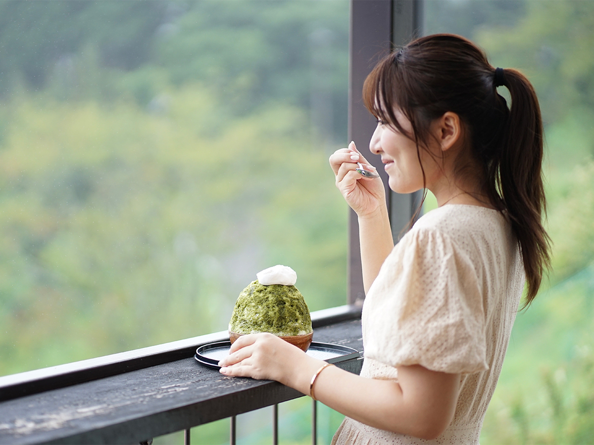 また、眼下に広がる茶畑と雄大な自然の絶景を眺めることができる「雲上テラス」で楽しめるかき氷も大人気!茶禅一のかき氷は東京の有名かき氷店「雪うさぎ」の姉妹店。自園の茶葉を使用したオリジナルのシロップは、煎茶特有の風味が魅力。氷は雲の様にふわふわで冷た過ぎず、一年を通して楽しむことができます♪