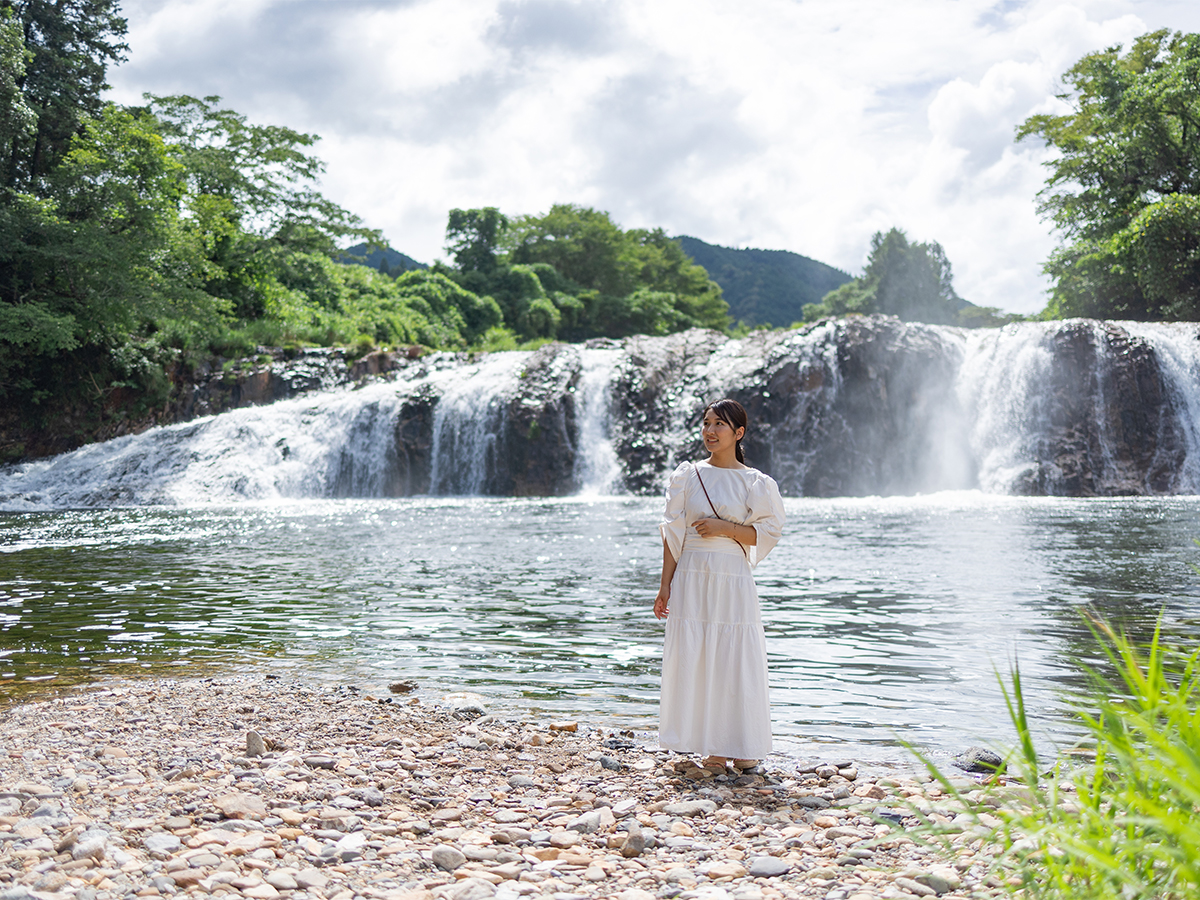 大千瀬川が織りなす神秘的な滝、蔦の渕でマイナスイオンをたっぷり浴びたら、老舗旅館のランチで身体が喜ぶジビエ料理や、澄んだ川で育った天然鮎の味わいにうっとり。食後のスイーツは絶景を眺めながらふわふわかき氷を堪能しよう!