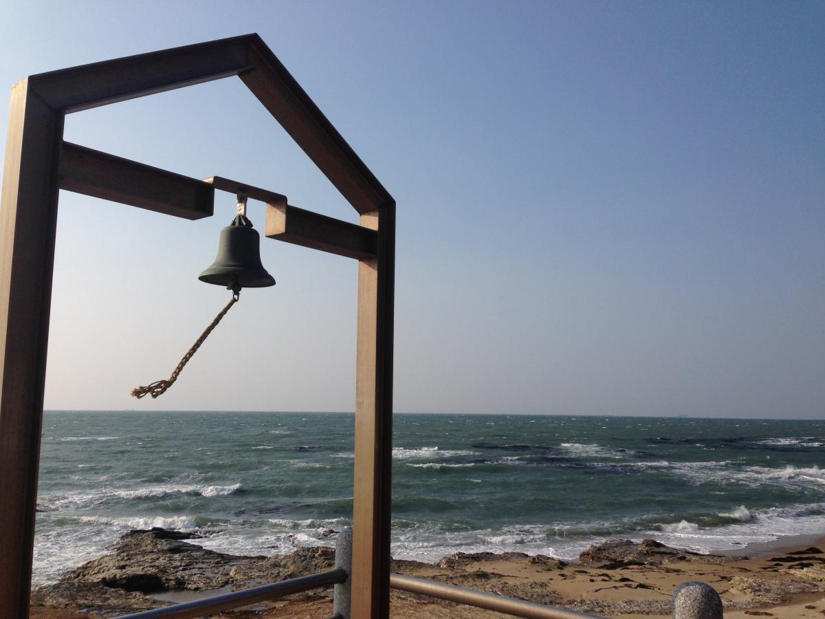 4美浜町のシンボル・野間灯台は、高さ18mで、1921年に設置された愛知県最古の灯台です。昔は灯台の周囲の囲いに南京錠を掛けると恋愛が成就するという言い伝えがありましたが、南京錠の重みで柵が倒壊したため、現在では丈夫なアルミ製のモニュメントに南京錠をかけるようになりました。