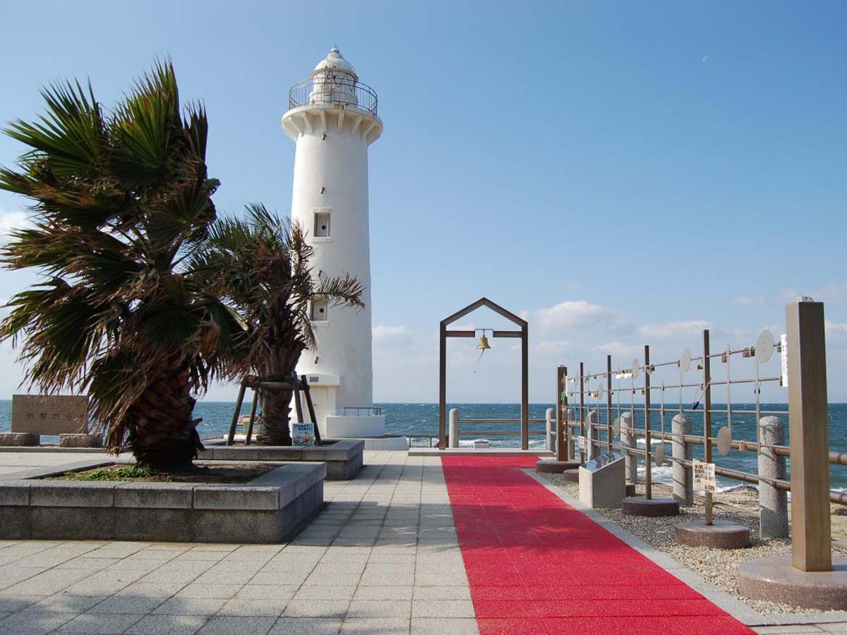 野間灯台 →(タクシーまたは車で10分)→ 恋の水神社 →(タクシーまたは車で6分)→ 南知多ビーチランド