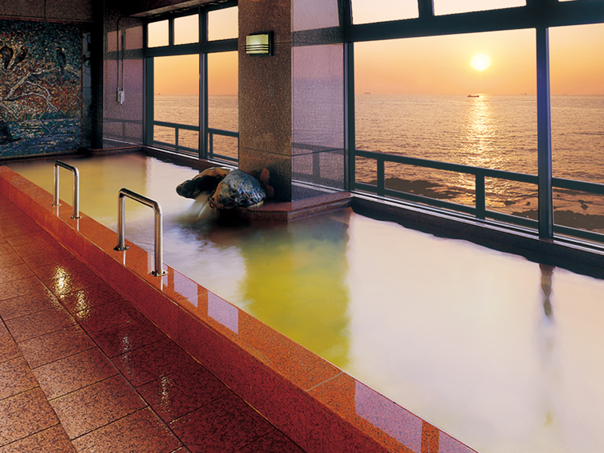B内海、山海、豊浜の3つの温泉を「南知多温泉郷」と呼びます。県内一の湯量を誇る温泉郷で、国道247号線の海岸沿いに温泉宿が点在し、そこから見る海は絶景です。特に、夕日の沈む時間帯は、伊勢志摩が赤く染まり、なんとも言えない美しさなんですよ。