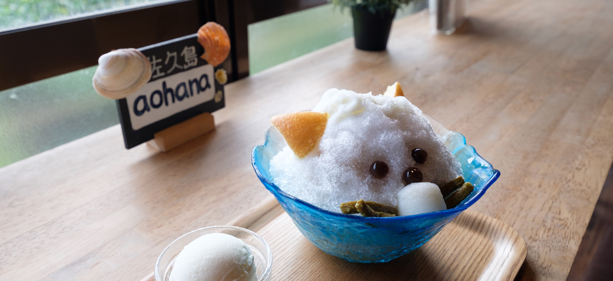 B佐久島にには、海の町に溶け込んだ雰囲気あるカフェがたくさんあります。”幻のふわふわかき氷”が名物の古民家カフェや、タピオカドリンク専門店&佐久島で一番種類の多いお土産屋など、カフェ巡りも楽しめます。