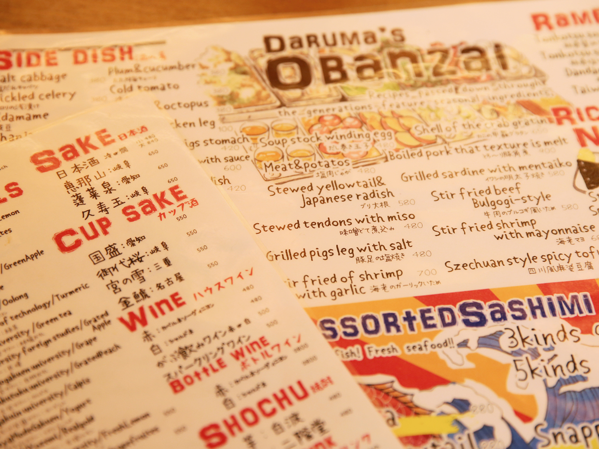 Besides a classic izakaya menu, Daruma also offers a large variety of Nagoya meshi and a wide selection of drinks.