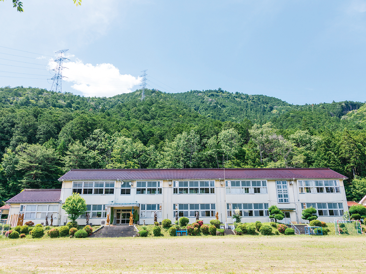 ・The facility utilizes the two-story wooden school building, including classrooms, an auditorium, the schoolyard, and the adjacent hill.
