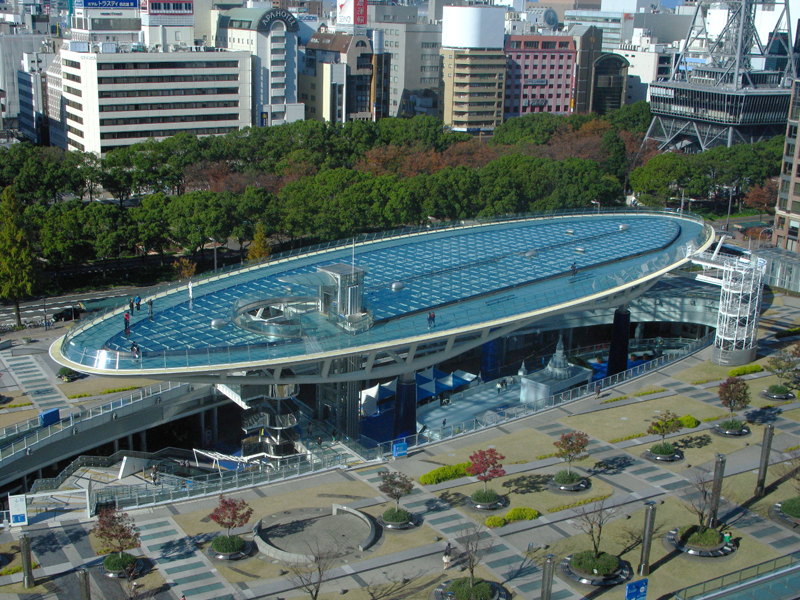 Start at Port of Nagoya Public Aquarium → (approx. 20 min. by car or taxi) → SCMAGLEV and Railway Park → (6-min. walk) → Aonami Line → (25-min. train ride) → Nagoya Station → (5-min. subway ride) → Sakae Station → (3-min. walk) → Oasis21 → Stay the night around Sakae Station.