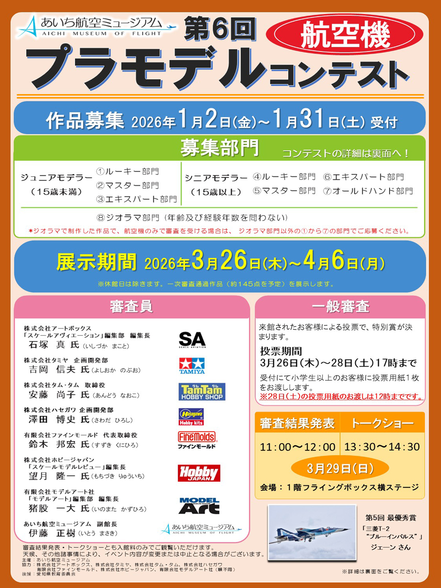 【募集期間】2026年1月2日~1月31日 【展示期間】2026年3月26日~4月6日 あいち航空ミュージアム 西春日井郡豊山町大字豊場(県営名古屋空港内) |